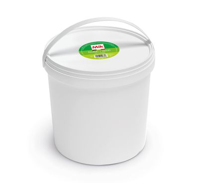 Yaourt brassé entier nature dans un seau de 5kg.